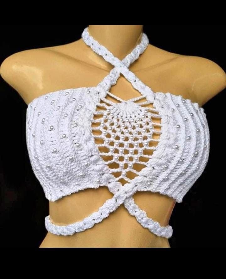 Cropped top in pineapple stitch with pearly detail pattern
